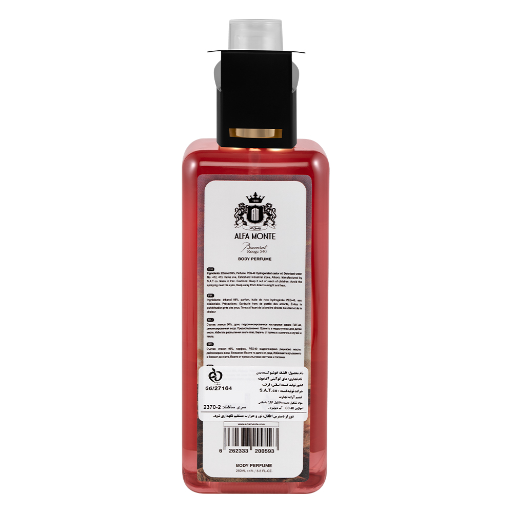 باکارات رژ یکی از لوکسترین و خاصترین محصولات فرانسوی است در صنعت عطر و ادکلن جهان بهعنوان نمادی از ظرافت، شیکپوشی، ماندگاری و اصالت شناخته میشود. بادی پرفیوم این ادکلن نسخهای سبکتر از ادکلن فرانسوی است که با حفظ پرفورمنس نسخه اصلی، رایحهای ماندگار و پخش بویی باورنکردنی به تن شما هدیه میدهد. در ادامه با ما همراه شوید تا این رایحه خاص و اسپرت را به شما معرفی کنیم.بادی اسپلش باکارات رژبادی اسپلش باکارات رژ محصولی اسپرت با رایحهای شرقی و گلی و طبعی گرم است که مناسب برای استفاده در روزهای سرد پاییز و زمستان طراحی شده است. این محصول با توجه به نتهای گرم و عمیقش ماندگاری بالا و پخش بویی فوقالعاده دارد.
