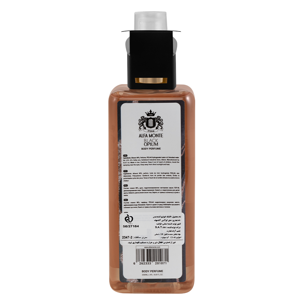 برخی از عطرها چیزی بیشاز یک رایحه معمولی هستند زمانی که صحبت از روایحی همچون بلک اوپیوم میشود، ترکیبی از احساسات و لحظات بیپایان و ماندگار به چشم میآیند. بادی پرفیوم بلک اوپیوم نسخهای ملایم و سبک از این عطر اغواگر است که نهتنها رایحهای شگرف و بینظیر دارد، بلکه برای هر زنی اثری فراموشنشدنی از خود به جای میگذارد. با ما همراه شوید تا این رایحه زنانه دوستداشتنی را به شما معرفی کنیم.بادی اسپلش بلک اپیومبادی اسپلش بلک اوپیوم محصولی زنانه با طبعی گرم از گروه بویایی شرقی وانیلی است که با پخش بویی بسیار خوب و ماندگاری عالی برای استفاده در فصول سرد سال طراحی شده است.