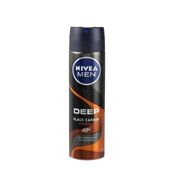 اسپری نیوا دیپ بلک کاربن اسپرسو بهترین انتخاب برای زمانی که عرق می کنیم!باکتری های موجود روی سطح پوست، دانه های عرق را تجزیه کرده و بوی ناخوشایندی ایجاد می کننداین بوی ناخوشایند که بسیار آزار دهنده است.بهترین گزینه برای کاهش و کنترل تعریق بدن اسپری های دئودرانت میباشد.اسپری نیوا با فرمولاسیونی قوی و حاوی کربن سیاه تا 48 ساعت به شکل موثری تعریق ناحیه زیربغل را کنترل می کند.کربن فعال در این محصول سموم موجود روی سطح پوست را جذب کرده و رطوبت ناشی از تعریق را کاهش می دهد.Nivea برای استفاده روزانه مناسب است و متناسب با فیزیولوژی مخصوص آقایان تولید شده و سازگاری آن با پوست کاملا به تایید رسیده است .