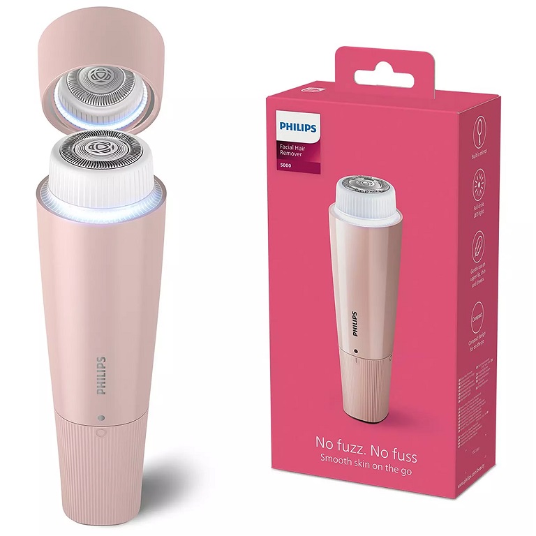 ماشین اصلاح موی صورت بانوان فیلیپس به آرامی ریزترین موهای لب بالایی، چانه، گونهها و خط فک را حذف کرده که در مقایسه با سایر روشهای حذف مو، پس از استفاده در صورت رویش مجدد موهای صورت نیز شما شاهد موهایی ضخیمتر، متراکمتر یا تیرهتر نخواهید بود.